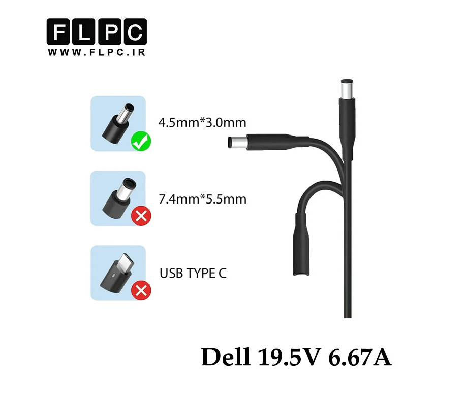 آداپتور لپ تاپ دل Dell 19.5V 6.67A PowerBank _4.5*3.0